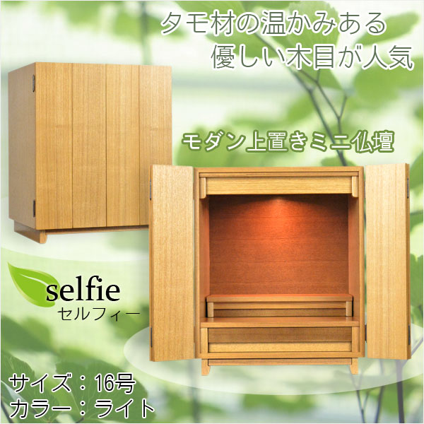 モダン仏壇【現代調ミニ仏壇:タモ杢 セルフィー16号 ライト】ダウンライト装備 小型仏壇 送料無料