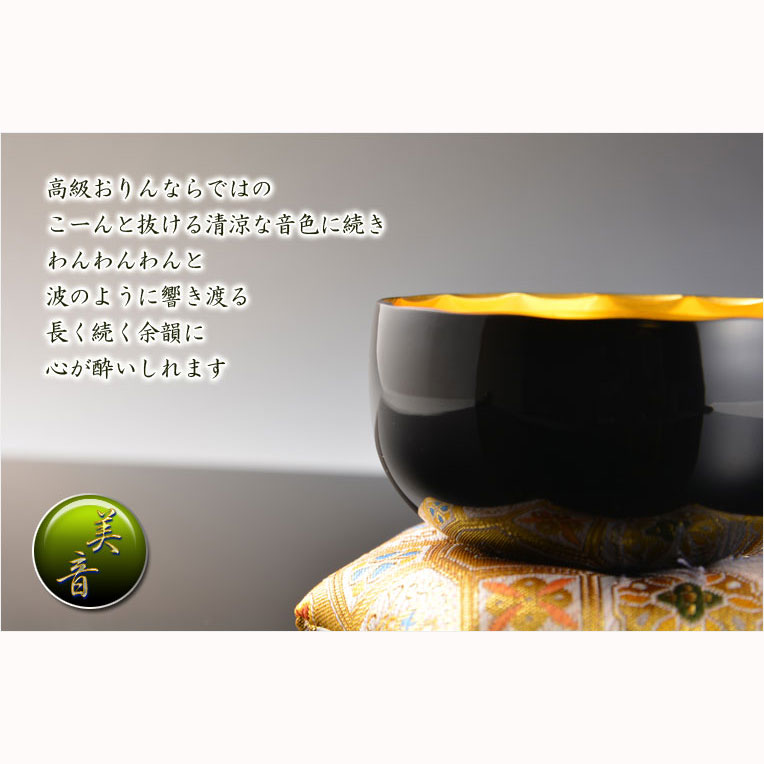 国産仏具【本焼き・蓮打彫金 沙張(さはり)りん:2.8寸 黒塗内箔押】佐波理 沙張 砂張 響銅 送料無料 仏壇仏具 おりん リン 鐘 鈴 磬 [戻る]