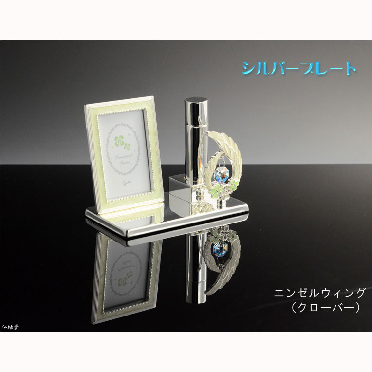ペット供養・名前刻印【アンファン・シルバープレート:エンゼルウィング(クローバー)】ペット仏具 手元供養 骨壷 写真立て 遺骨 メモリアル 送料無料