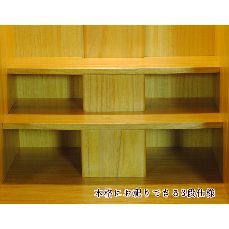【ティアラ御本尊サイズ大+想々型黒紅色3.5寸+たまゆらりん】桐材・中型上置き仏壇【ハーモニー35号・ライトブラウン色 仏具込み】