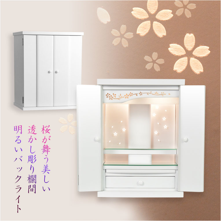(11月下旬入荷予定)ホワイト色 仏壇+仏壇台【LEDバックライト搭載 桜尽くしのモダン仏壇:花心(はなごころ)15号 全6色】仏壇・仏具 上置き仏壇 家具調仏壇 上置き仏壇 現代調仏壇 供養 命日