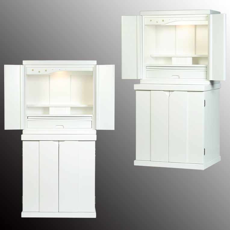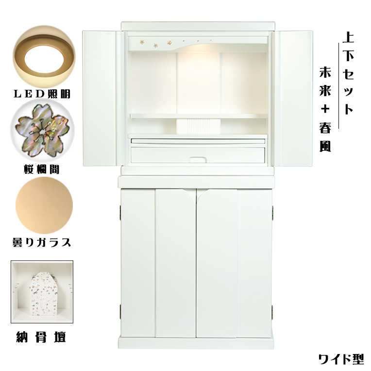 ホーム仏壇+仏壇台セット【ワイド型】納骨壇・仏壇・仏壇台上下セット【ミニモダン仏壇・未来18号ワイド型+仏壇台・春風】・ホワイト色(白)・送料無料shunpuwd