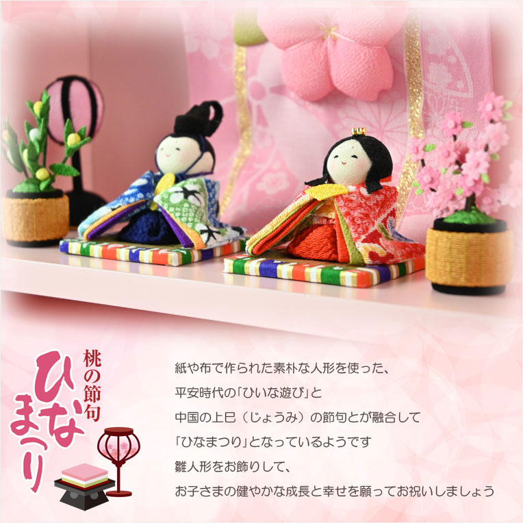 ホーム | 縁起物・節句商品 > 雛人形(予約注文開始 1月下旬出荷)ひな祭り【国産京都 コンパクト収納飾り:木製ケース入り ちりめん雛人形・陽菜(HINA)パステルピンク】送料無料 ひなまつり 雛祭り 桃の節句 上巳 雛人形 ひな人形 ひな飾り お雛さま お姫様 お内裏さま 親王 お殿様 初節句 節句飾り ケース飾り