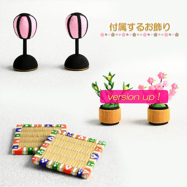 同じく、ちりめん製の雪洞(ぼんぼり)、橘、桜のお飾りが付いていますので