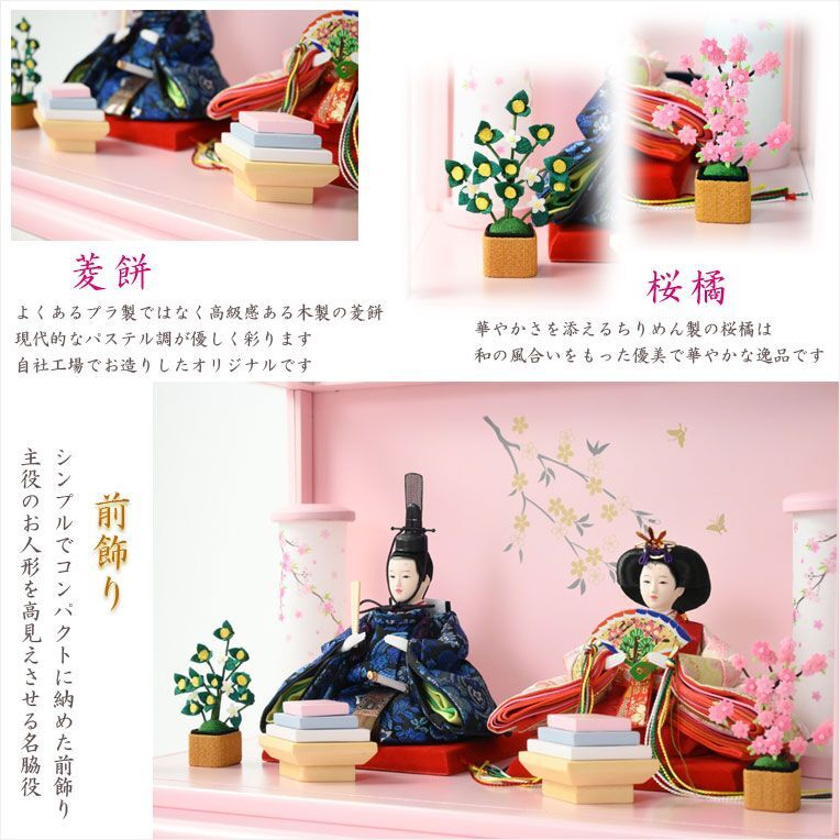 前飾りも、よくあるプラ製ではなく高級感ある木製の菱餅