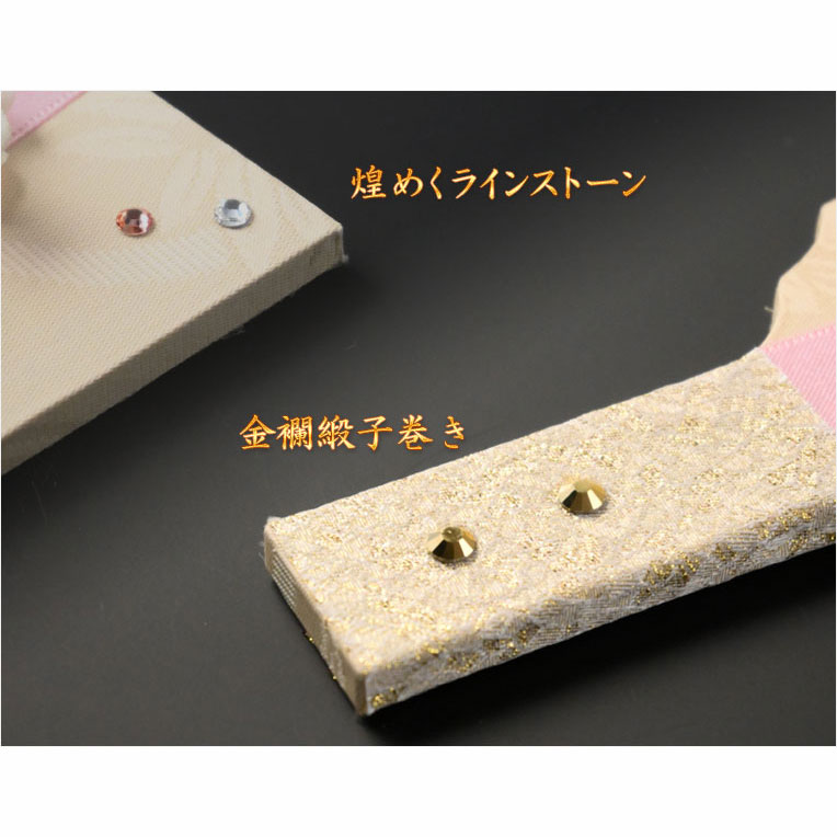 羽子板は反射で見え隠れする和柄模様の優美な布張り仕様