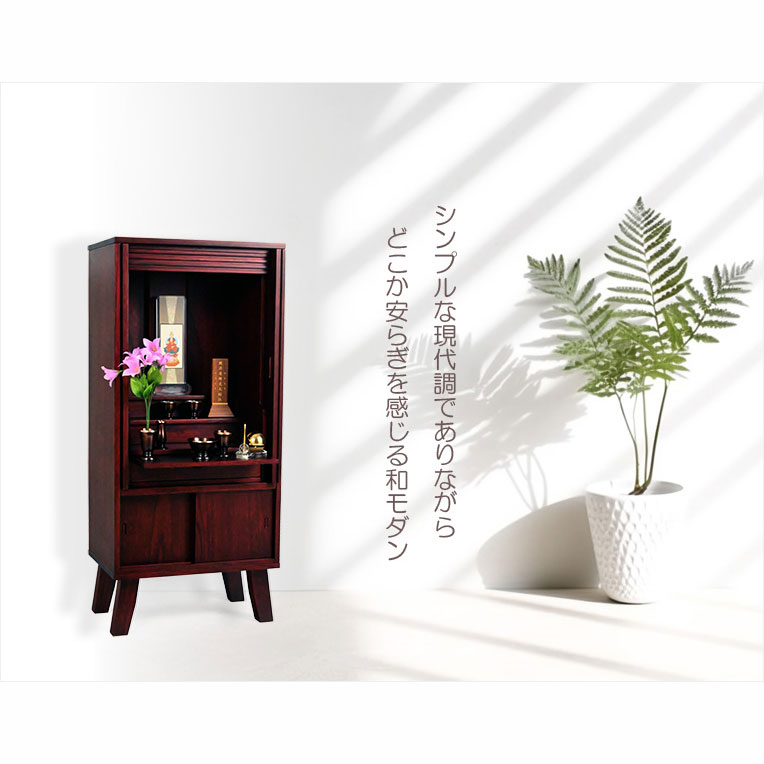ホームモダン仏壇大型家具調仏壇【モダン仏壇 新キャビン:桐無垢材 省スペース型100cm・スライドイン扉 一体型33号 紫檀色】リビング仏壇 インテリア仏壇 床置き小型仏壇 送料無料