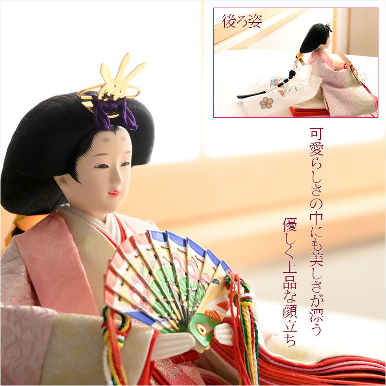 ◆木製アクリルケース付きの優雅な国産雛人形