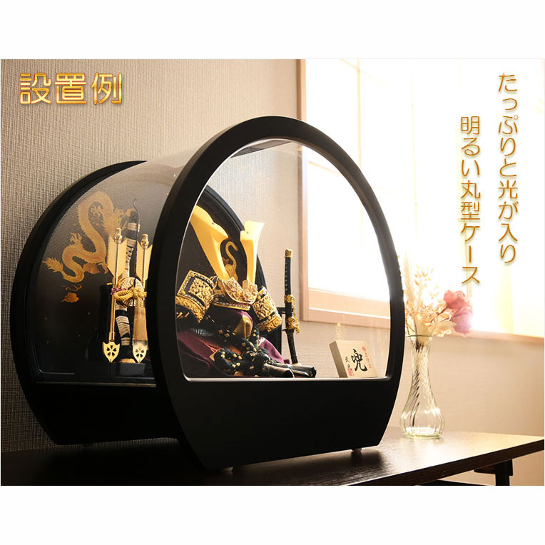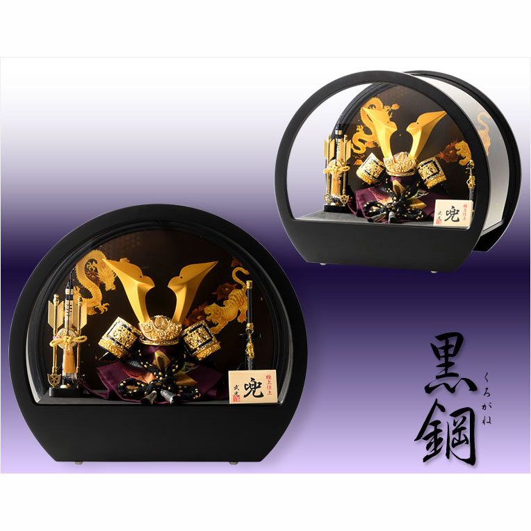 (予約注文開始 3月下旬出荷)節句飾り【端午の節句:国産五月人形 黒鋼(くろがね)大鍬形兜・弓太刀飾り 木製丸型黒ケース付】ゴールド かぶと飾り 兜飾り 節句人形 こいのぼり 五月飾り 菖蒲の節句 ケース飾り こどもの日 送料無料[eng-0046-1]