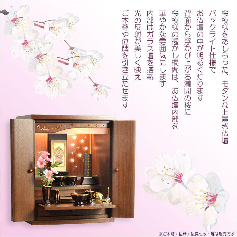 ホーム小型仏壇(11月下旬入荷予定)ウォールナット色 モダンな小型仏壇【LEDバックライト搭載 桜尽くしのモダン仏壇:花心(はなごころ)18号 全6色】仏壇・仏具 上置き仏壇 家具調仏壇 上置き仏壇 現代調仏壇 供養 命日
