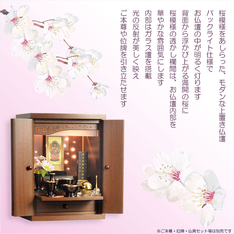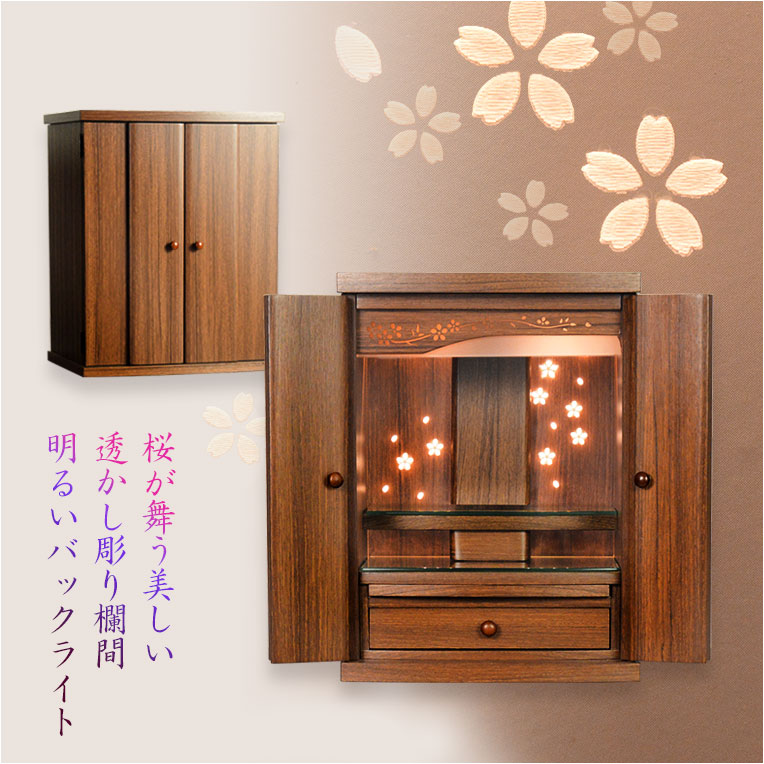 ホーム小型仏壇(11月下旬入荷予定)ブラウン色 モダンな小型仏壇【LEDバックライト搭載 桜尽くしのモダン仏壇:花心(はなごころ)15号 全6色】仏壇・仏具 上置き仏壇 家具調仏壇 上置き仏壇 現代調仏壇 供養 命日