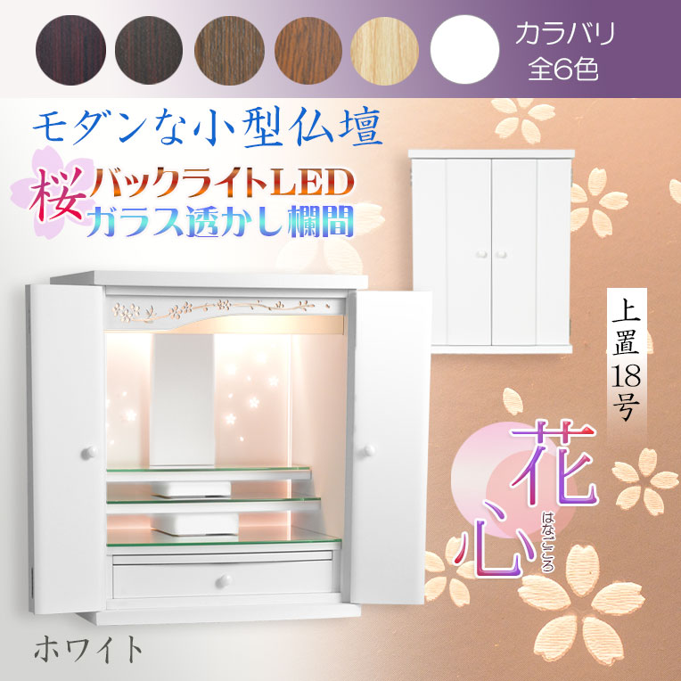 ホーム小型仏壇(11月下旬入荷予定)ホワイト モダンな小型仏壇【LEDバックライト搭載 桜尽くしのモダン仏壇:花心(はなごころ)18号 全6色】仏壇・仏具 上置き仏壇 家具調仏壇 上置き仏壇 現代調仏壇 供養 命日