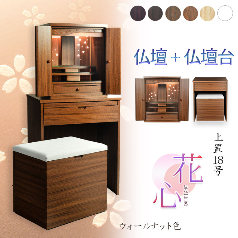 ホーム仏壇+仏壇台セット(11月下旬入荷予定)ウォールナット色 仏壇+仏壇台【LEDバックライト搭載 桜尽くしのモダン仏壇:花心(はなごころ)18号 全6色】仏壇・仏具 上置き仏壇 家具調仏壇 上置き仏壇 現代調仏壇 供養 命日