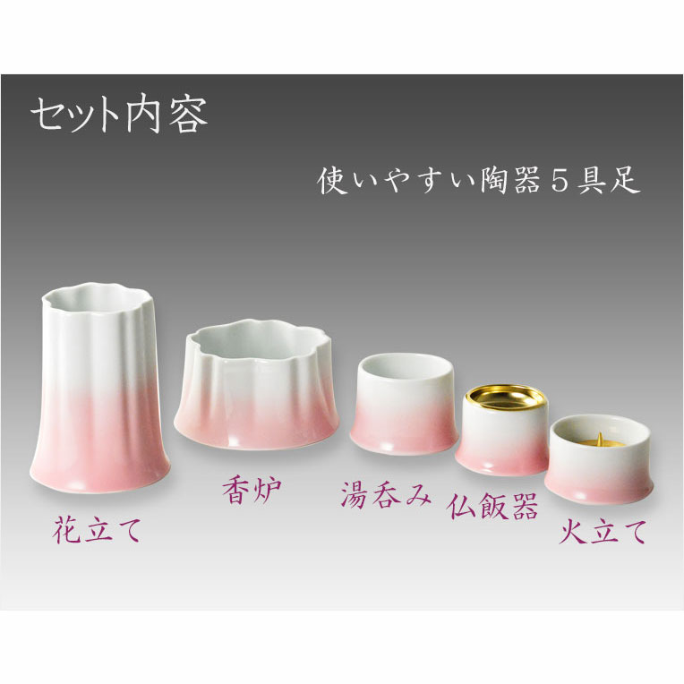 国産仏具【有田焼モダン5具足:桜模様の陶器製 織絵(おりえ)ピンク 全2色 3.0寸】仏壇仏具 陶器製仏具 陶磁器 桜 現代調仏具 送料無料[bg-00847-p]