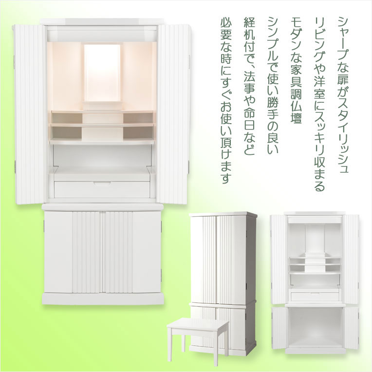 ホームモダン仏壇大型モダン仏壇【便利な経机付 天然木タモ材・中型仏壇:ソラノス43号ワイド バリエーション3色 ホワイト色】現代調仏壇 家具調仏壇 おしゃれ イス付 リビング