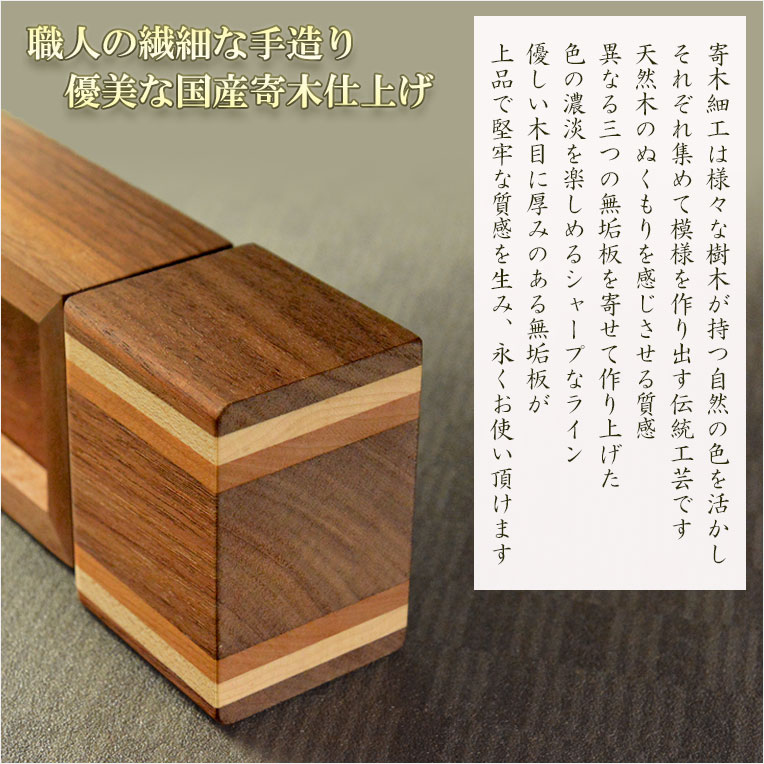 天然木が高騰する中、異なる三つの銘木の無垢材に拘った逸品