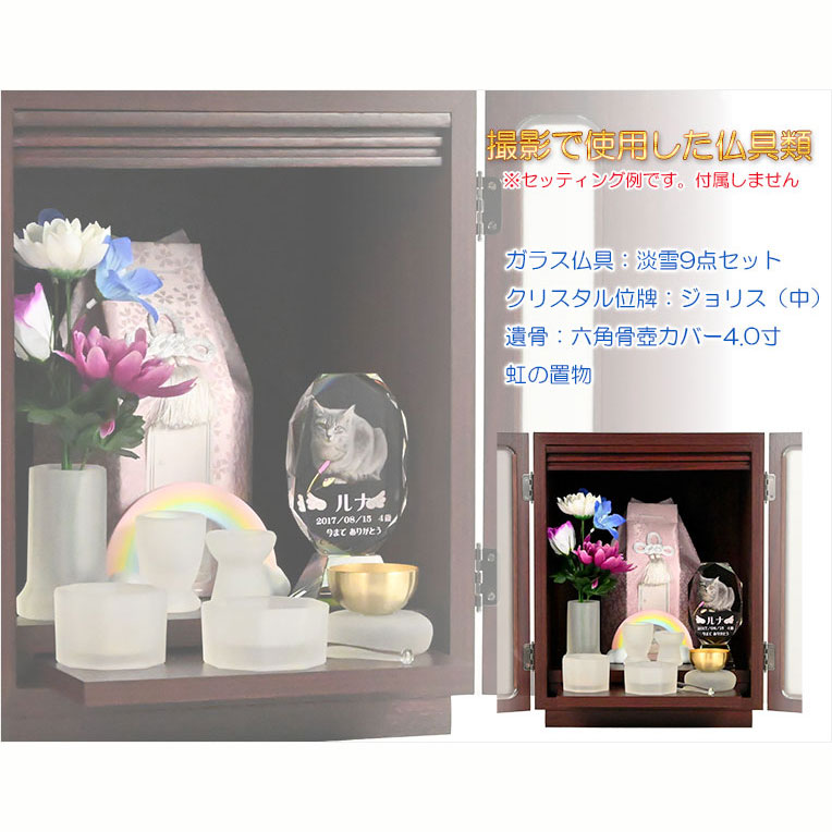 イメージ撮影で使用したクリスタルペット位牌、仏具などは別売品です