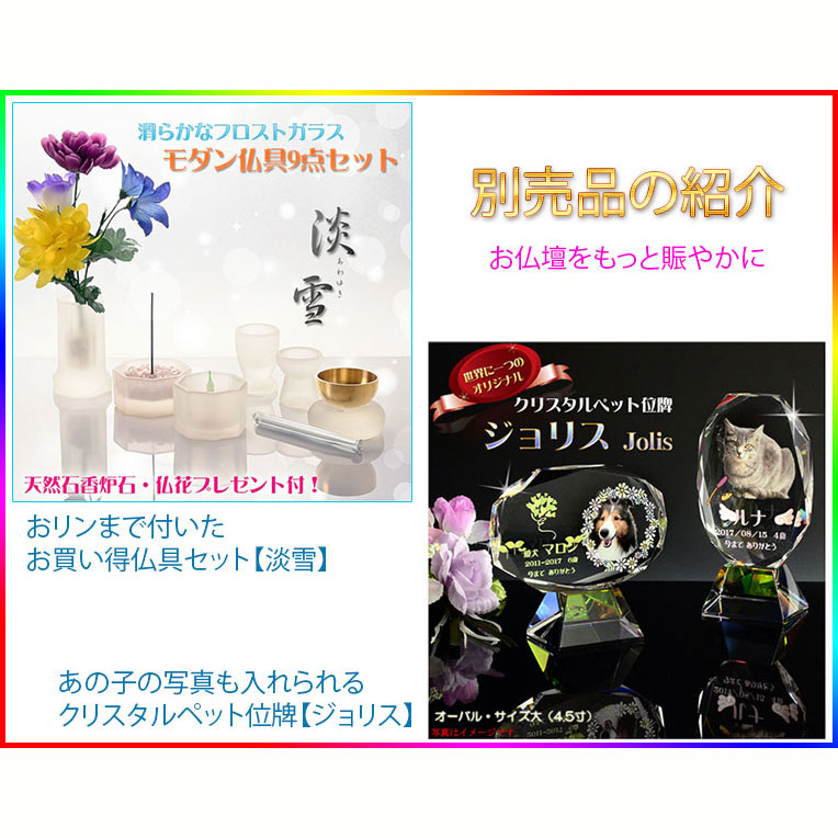 イメージ撮影で使用したクリスタルペット位牌、仏具などは別売品です